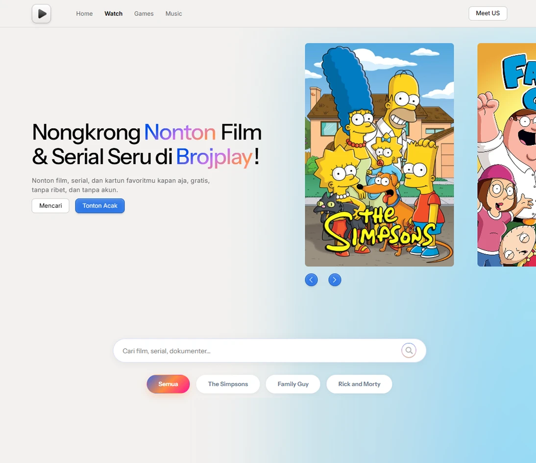 Nonton film, serial, dan kartun favoritmu kapan aja, gratis, tanpa ribet, dan tanpa akun.